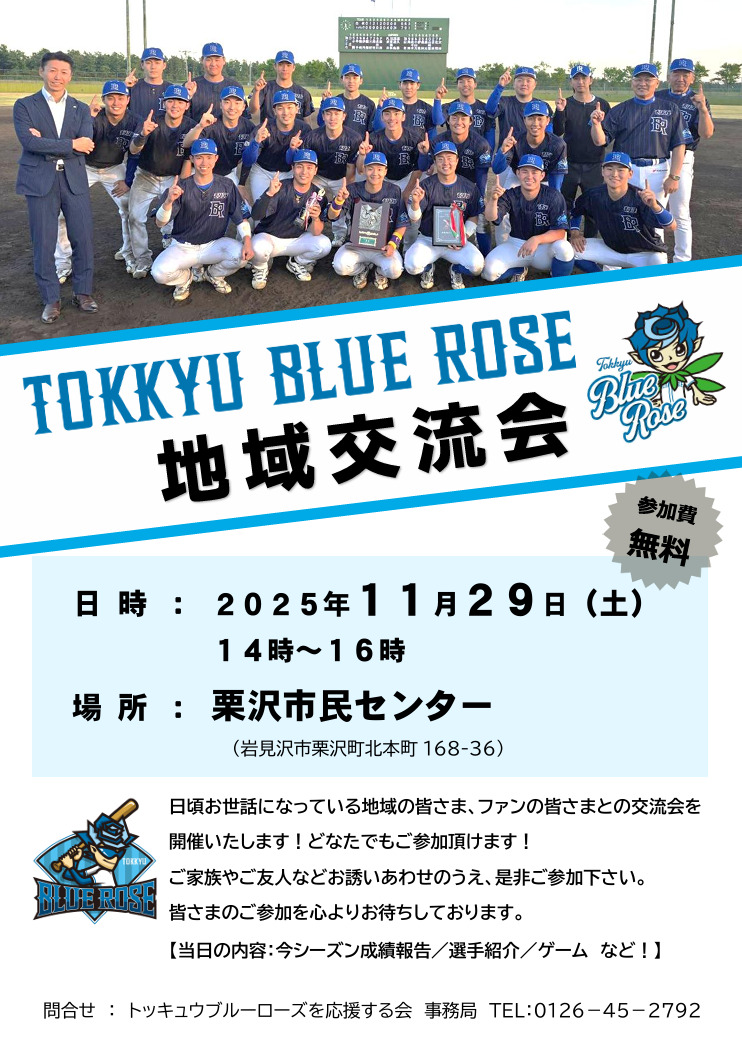 11月29日(土)にトッキュウブルーローズ地域交流会を行います!