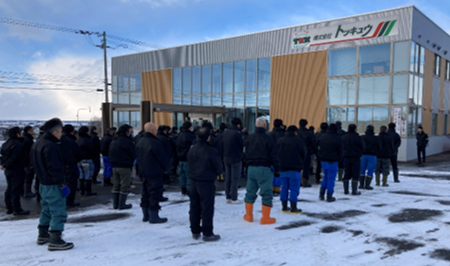 令和8年1月5日にトッキュウグループ新年交通安全大会を行いました。 松野岩見沢市長をはじめ多数のご来賓の方々にご臨席を賜り、 交通・労働災害撲滅に向け安全宣言を致しました。 またグループ社員により募金活動を行い、岩見沢市長にお渡ししました。